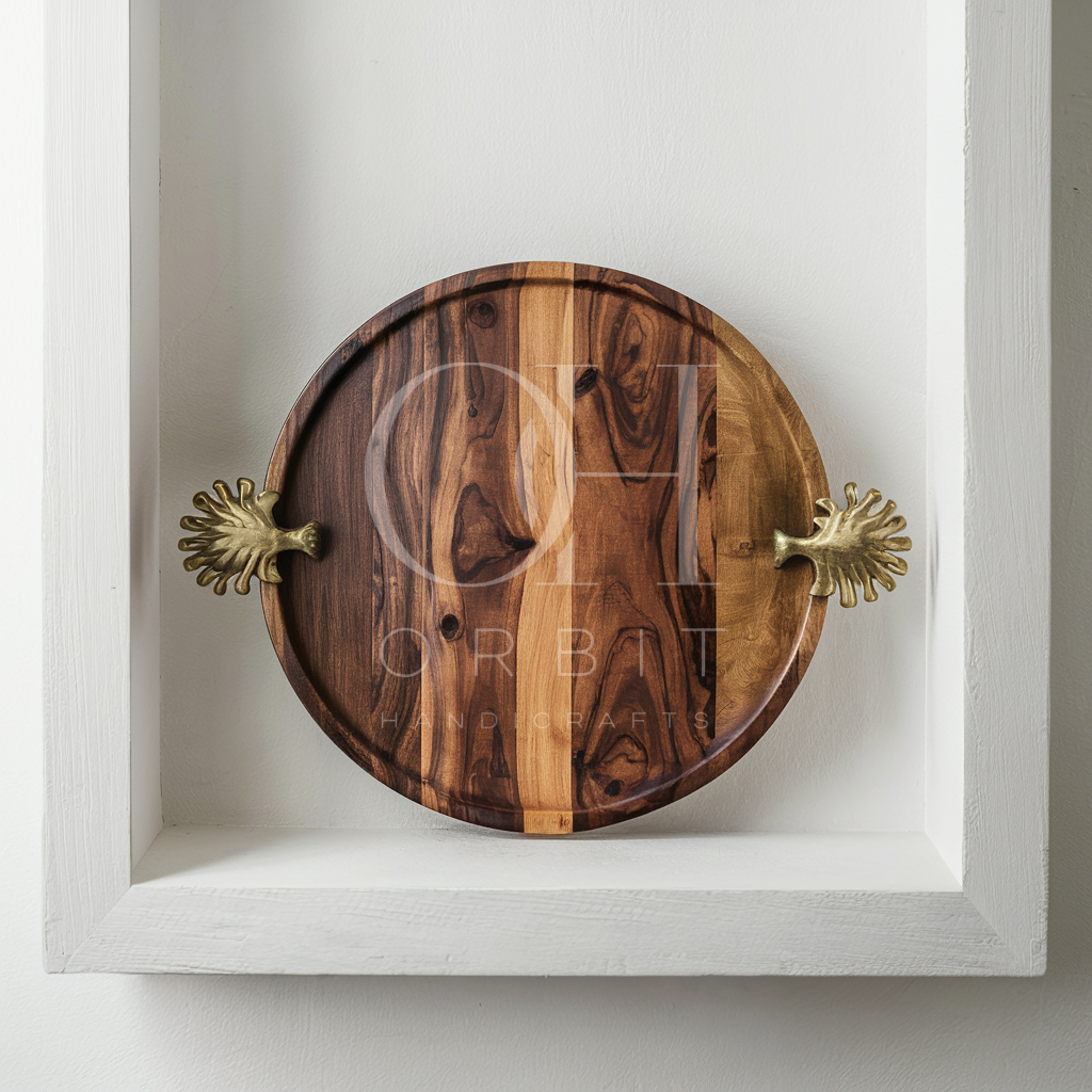 Elevate your dining experience with the Abstract Design Natural Wood Round Tray from Orbit Handicrafts. With its artistic handles, natural beauty, versatile use, functional design, and timeless appeal, this tray is sure to make a statement in your home.
