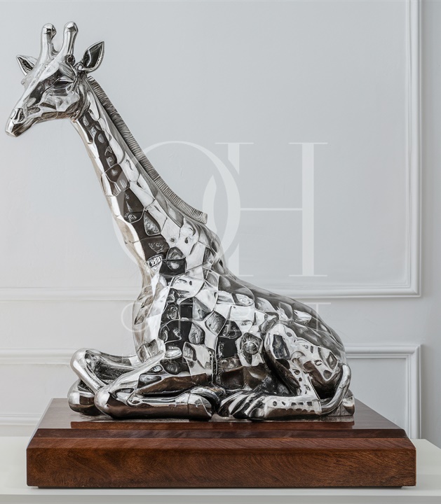 Versatile Decor: Whether displayed in a living room, office, or entryway, the Regal Metal Giraffe Sculpture makes a striking statement piece. Its versatile design allows for seamless integration into various decor styles, infusing any space with a sense of adventure and charm.