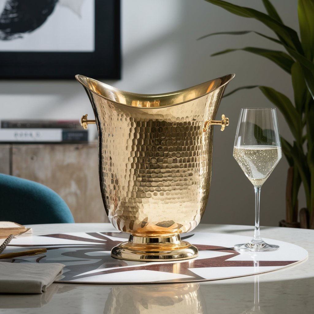 Introducing Vintage Gold-Plated Brass Wine Cooler—crafted from hand-beaten brass with a contemporary finish. Chill wine in style with Orbit Handicrafts’ Vintage Gold-Plated Brass Wine Cooler.